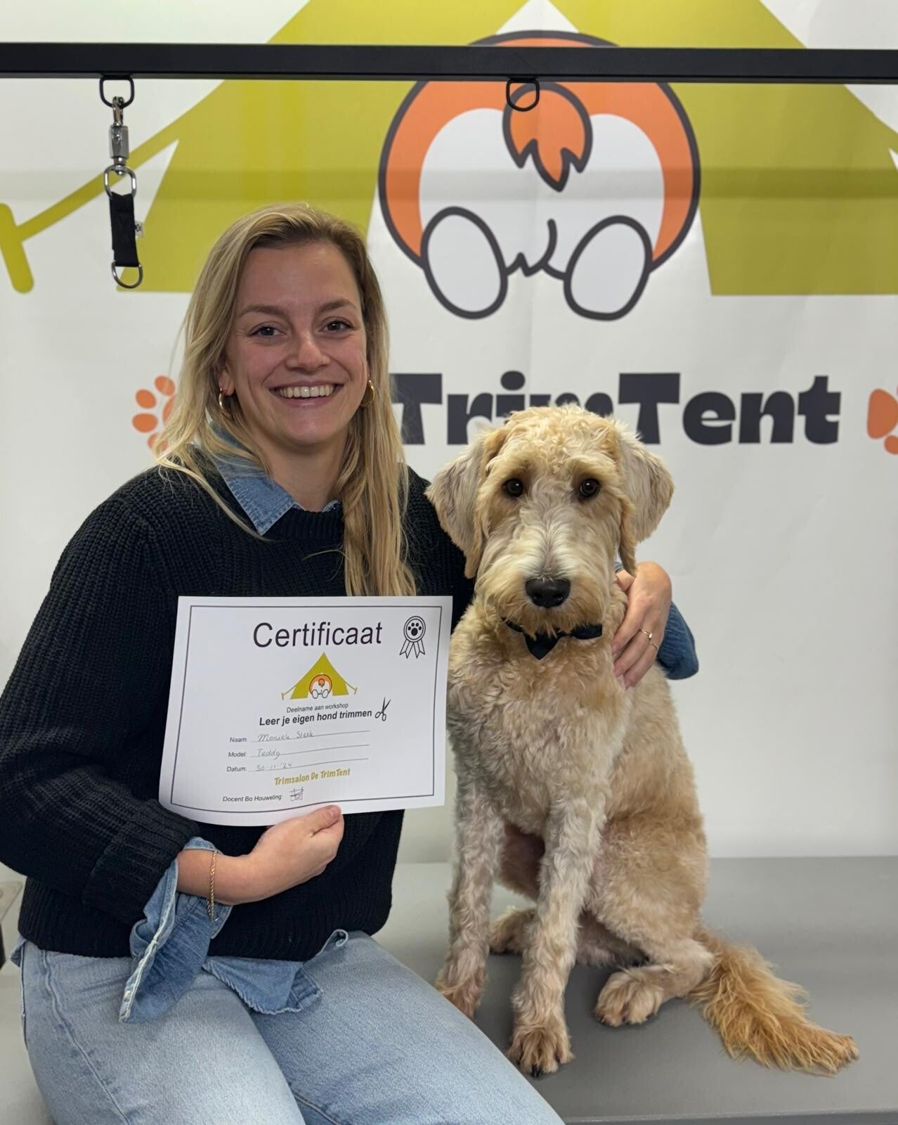 Moniek heeft samen met model Teddy haar certificaat voor trimmen @ home behaald 🤗